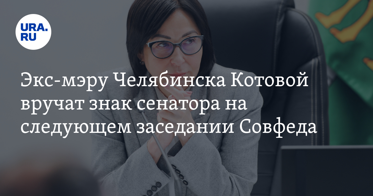 Экс-мэр Челябинска Наталья Котовой, делегированная губернатором Алексеем Текслером в Совет Федерации получит нагрудный знак и удостоверение сенатора на следующей сессии Совфеда. Об этом на заседании 25 сентября заявила спикер Валентина Матвиенко.