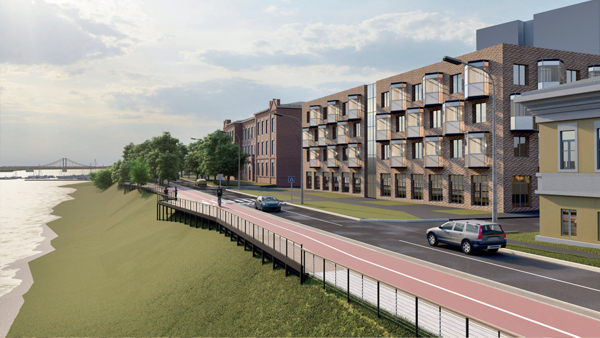Особенность территории – сильный перепад рельефа: крутой откос значительно усложняет процесс благоустройства. С учётом этого решено выполнить работы поэтапно. Первым делом намечено устройство верхней части набережной – от улицы Гагарина до Архангельского ЛВЗ, во вторую очередь благоустроят нижнюю часть, от спуска к реке до улицы Комсомольской.