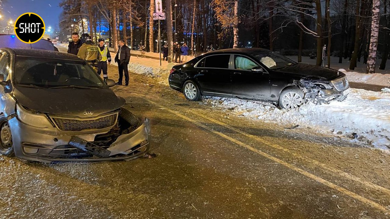 По информации SHOT, авария чёрного Maybach и Kia произошла после выступления артиста сегодня вечером в районе Южной дороги. Причины ДТП устанавливаются. На месте работают экстренные службы.