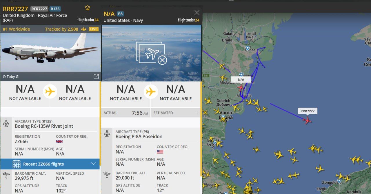 ΠΡΠΈΡΠ°Π½ΡΠΊΠΈΠΉ ΡΠ°ΠΌΠΎΠ»Π΅Ρ-ΡΠ°Π·Π²Π΅Π΄ΡΠΈΠΊ RC-135W Rivet Joint ΡΠ°ΠΊΠΆΠ΅ Π·Π°ΠΌΠ΅ΡΠ΅Π½ Π² ΡΠΎΠΌ ΠΆΠ΅ ΡΠ΅Π³ΠΈΠΎΠ½Π΅ c ΠΎΡΠΊΠ»ΡΡΠ΅Π½Π½ΡΠΌΠΈ ΡΡΠ°Π½ΡΠΏΠΎΠ½Π΄Π΅ΡΠ°ΠΌΠΈ.