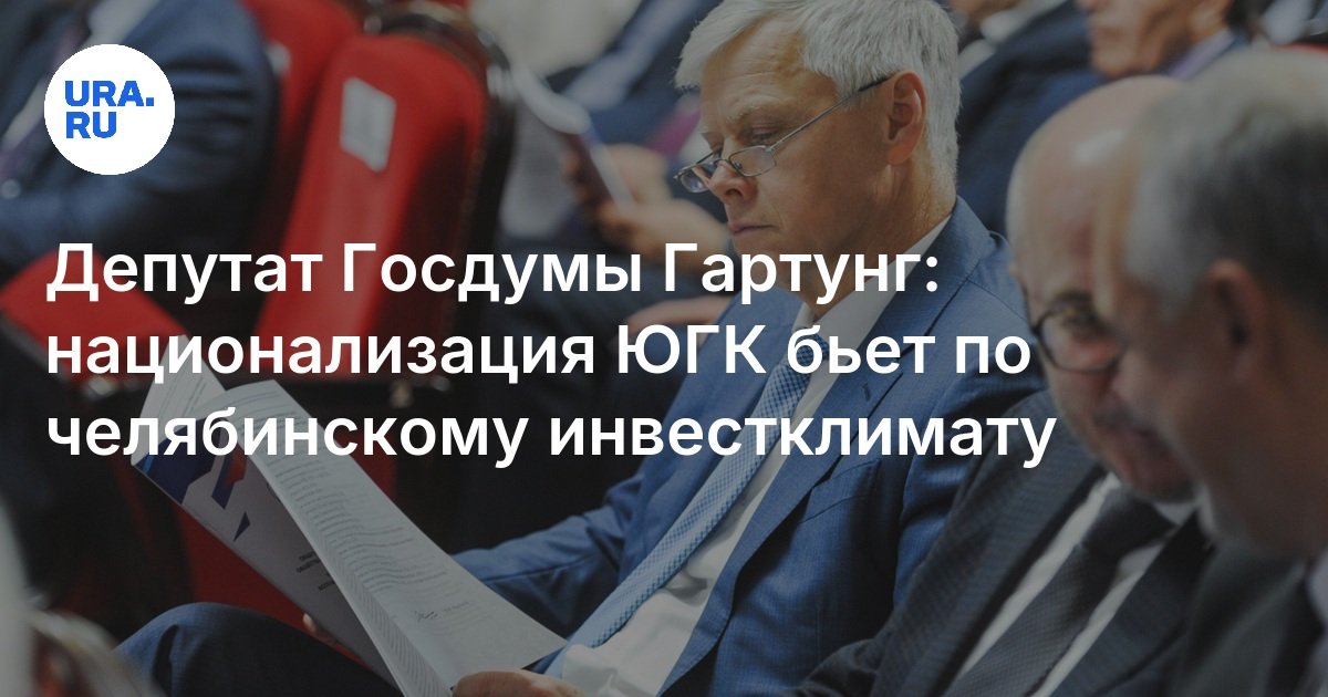 После иска о национализации челябинского холдинга «Южуралзолото группа компаний» (ЮГК) депутат Госдумы РФ Валерий Гартунг забеспокоился об возможном ухудшении инвестиционного климата региона. Сам факт поданного заявления уменьшил желание бизнесменов избираться в заксобрания, добавил парламентарий.