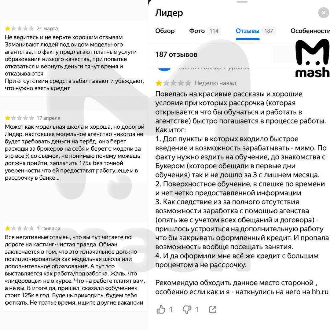 Как рассказал Mash 27-летний Тимур, он обратился в модельную контору на Тверской-Ямской, чтобы стать известным и светить лицом на рекламных баннерах и карточках товара на маркетплейсах (админ хз, чё модели делают ещё). В офисе "Лидера" ему пообещали всё сделать под ключ, но перед этим предложили купить обучение и сразу подписать контракт. Мол, без этого никак.