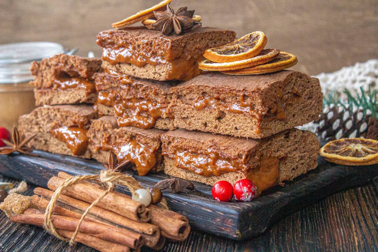 9. Если хотите, украсьте пряник фигурными надрезами или остатками теста. Выпекайте 30–40 минут до золотисто-коричневого цвета.