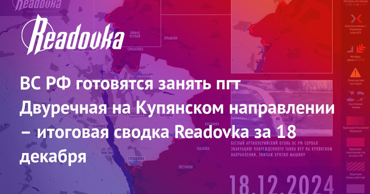 ВС РФ готовятся занять пгт Двуречная на Купянском направлении – итоговая сводка Readovka за 18 декабря