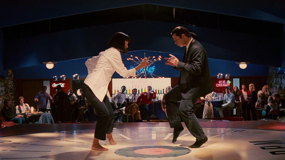 Вторая гениальная находка Хайман — костюм Мии Уоллес в сцене с ее выходом в свет. Мия оделась в черный костюм и белую рубашку, потому что хотела показать Винсенту, что она такой же «бешеный пес», как и он сам.