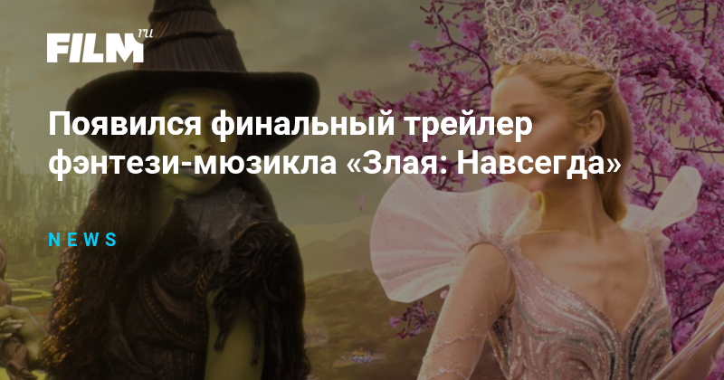 Universal опубликовала финальный трейлер мюзикла «Злая: Навсегда». Продолжение прошлогодней «Сказки о ведьме Запада» выйдет в зарубежный прокат 21 ноября.