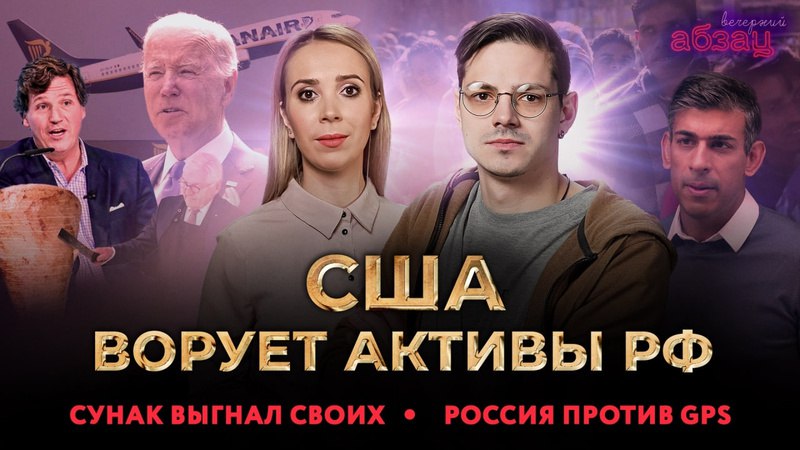 Наш Rutube https://rutube.ru/u/absatzmedia =========== «Вечерний Абзац» с Сергеем Куликовым и Марией Иваткиной. США ворует активы РФ, Сунак выгнал своих, Россия против GPS. =========== 27 апреля спецэфир эксклюзивно на Rutube с Михаилом Шахназаровым, Еленой Оя и Александром Карловым. ===========..