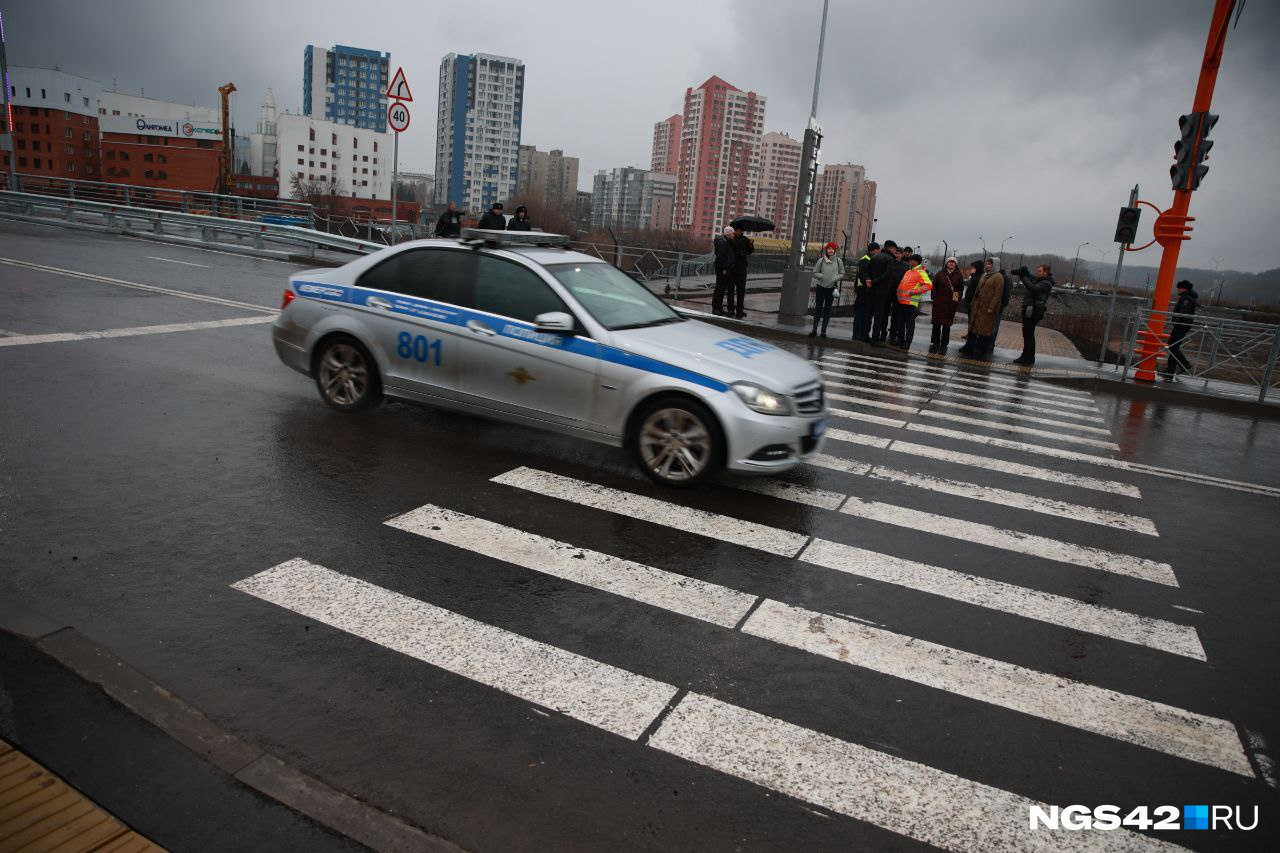 Первыми по 92-метровому объекту проехались полицейские и лишь после этого компания-подрядчик «Кемеровоспецстрой», возводящая конструкцию, официально запустила движение по автомобильному мосту.