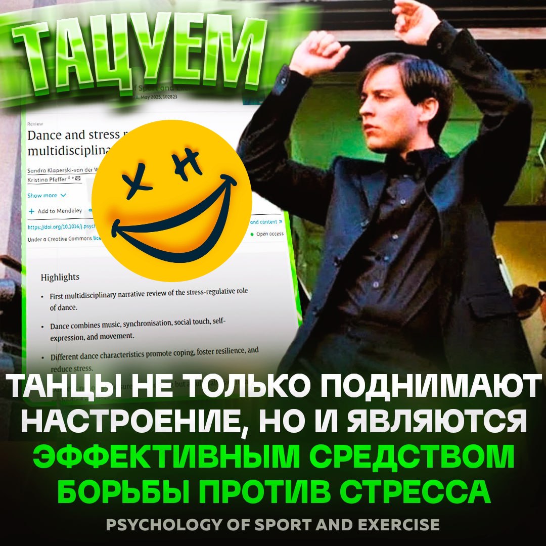 🤩 Лучшее лекарство от стресса — это ТАНЦЫ! Учёные из Гилфорда выяснили, что танцы работают в борьбе со стрессом эффективнее медитаций и фитнеса