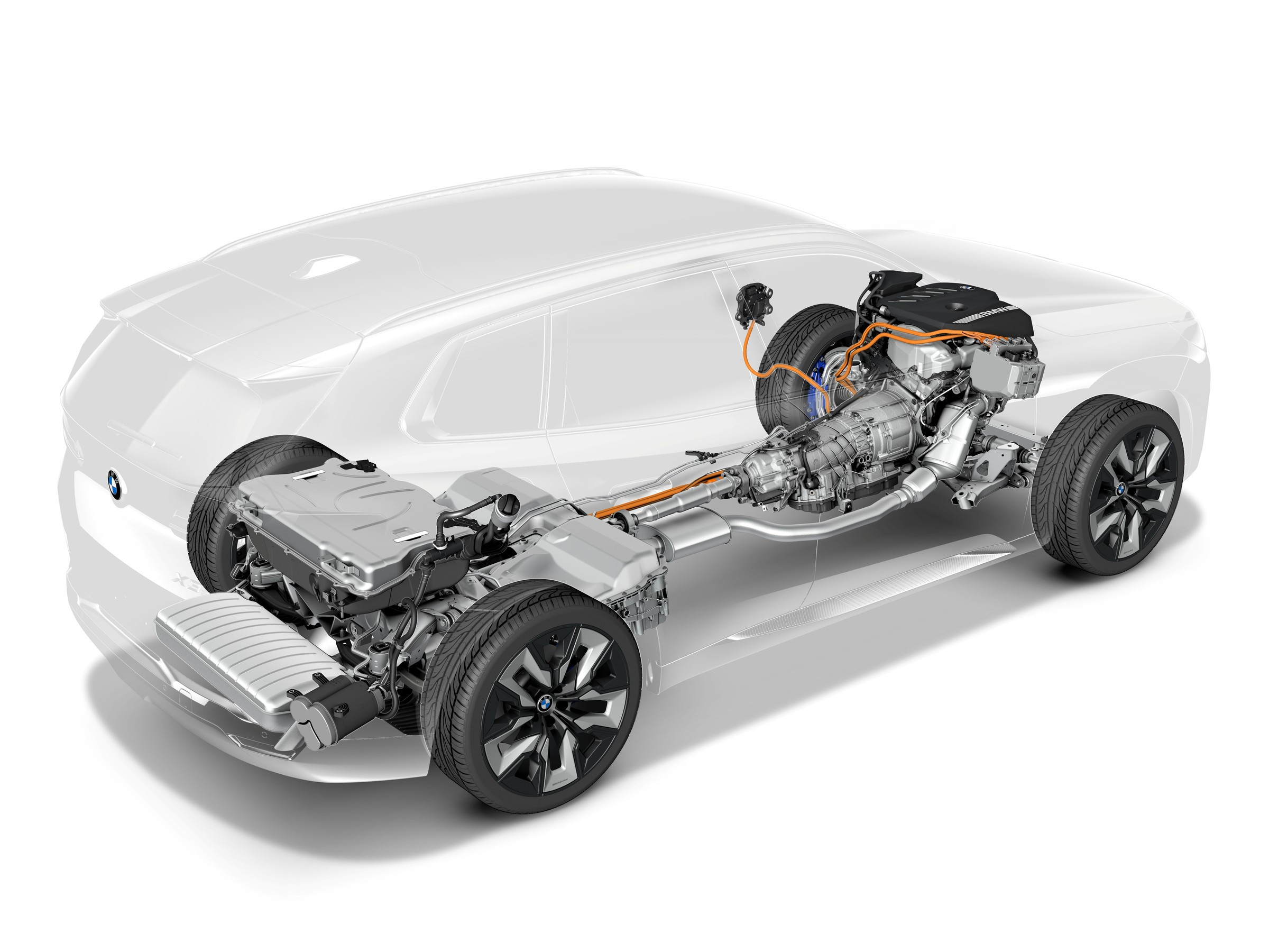 Plug-in гибридный BMW X3 30e xDrive (от 66 000 евро) оснащён 2,0-литровым бензиновым турбомотором (190 л.с., 310 Нм), а единственный электромотор (184 л.с., 250 Нм) вживлён в автоматическую коробку передач, максимальная совокупная отдача силовой установки — 299 л.с. и 450 Нм. Разгон до 100 км/ч в гибридном режиме занимает 6,2 с, максимальная скорость — 215 км/ч. При езде исключительно на электротяге максимальная скорость ограничена на отметке 140 км/ч, полного заряда батареи хватит на 90 км пробега по циклу WLTP. Максимальная мощность зарядки батареи — всего 11 кВт, полная зарядка займёт 2 часа 15 минут.