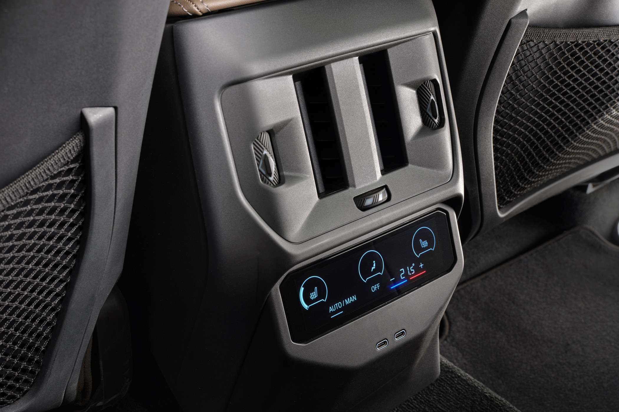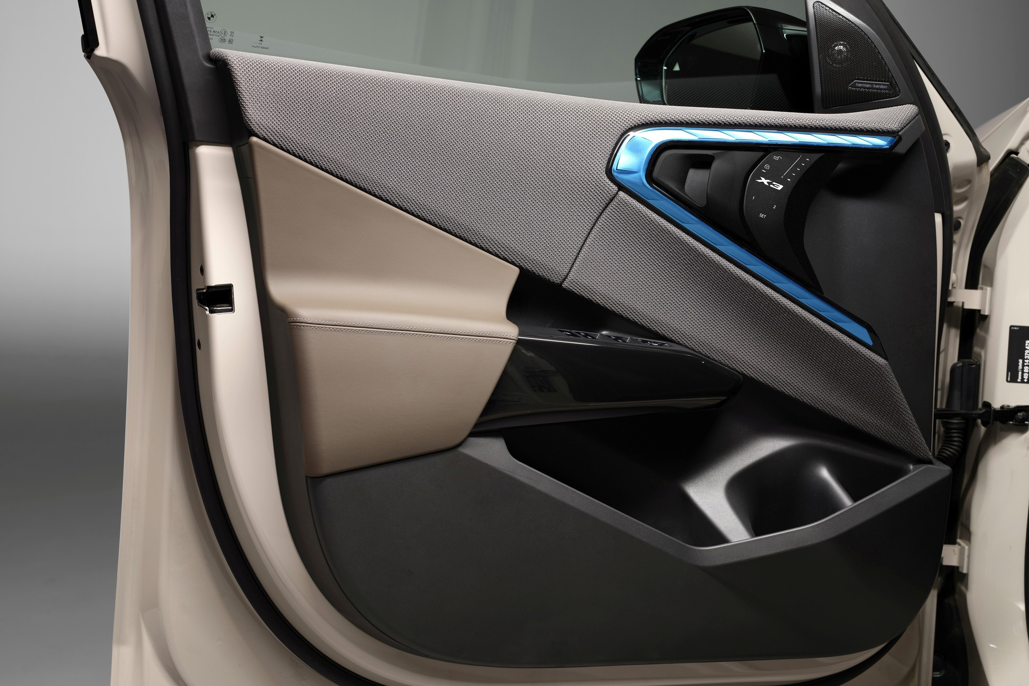 В салоне BMW X3 со сменой поколений стало меньше физических кнопок и больше сенсорных, то есть эргономика ухудшилась. Сенсорным стал не только центральный блок микроклимата, но и боковые панели в передних дверях — они заведуют боковыми дефлекторами системы вентиляции, центральным замком и памятью настроек водительского сиденья. Климат-контроль уже в «базе» трёхзонный. Сенсорные дверные панели, центральный блок микроклимата и лоток с беспроводной зарядкой для смартфона обрамлены толстым светодиодным контуром, способным менять цвета и создавать градиенты.