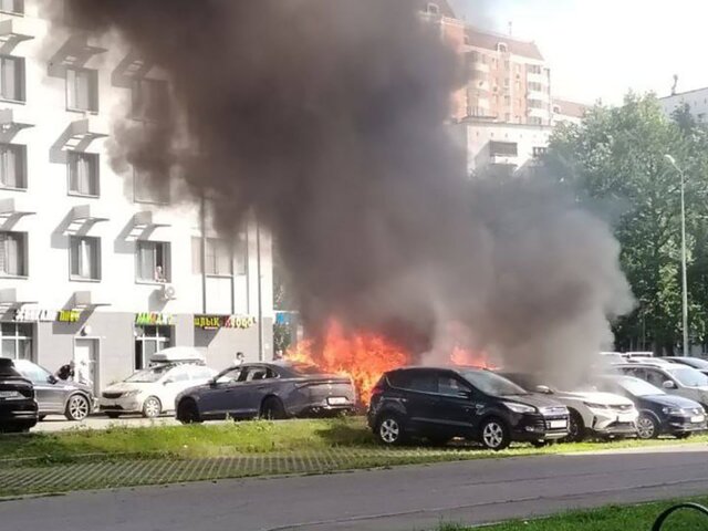 Ранее на парковке в подмосковном селе Акулове загорелись 13 автомобилей. Пожарным удалось локализовать открытое горение.