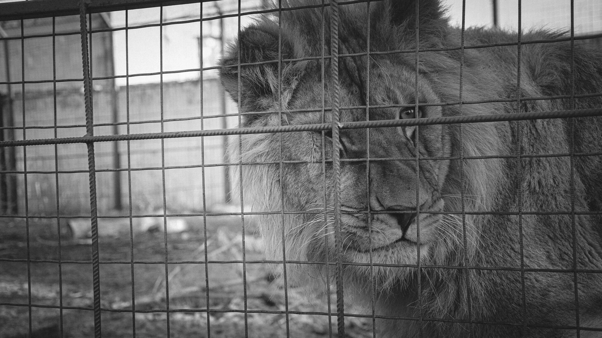 На кадрах видно большой вольер, сбоку которого расположена клетка с закрывающейся сверху решеткой. Владельцу льва такое «жилище» показалось слишком маленьким.