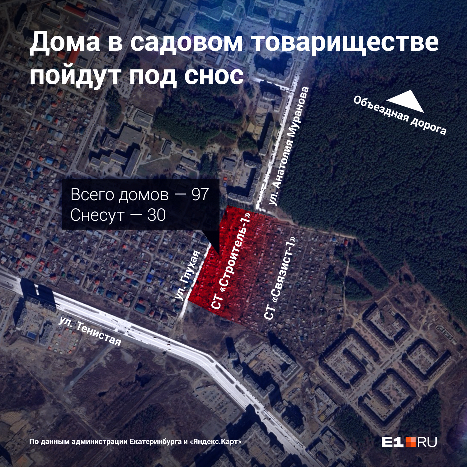 По данным «Яндекс.Карт», на территории садового товарищества находится 97 домов. В приложении к постановлению сказано, что изымать будут земли и постройки на участках