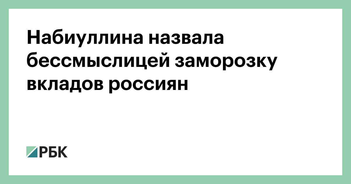 Идея о заморозке вкладов россиян или выплаты процентов по ним — бессмыслица, заявила глава ЦБ Эльвира Набиуллина, отвечая на соответствующий вопрос на пленарном заседании Госдумы, передает корреспондент РБК.