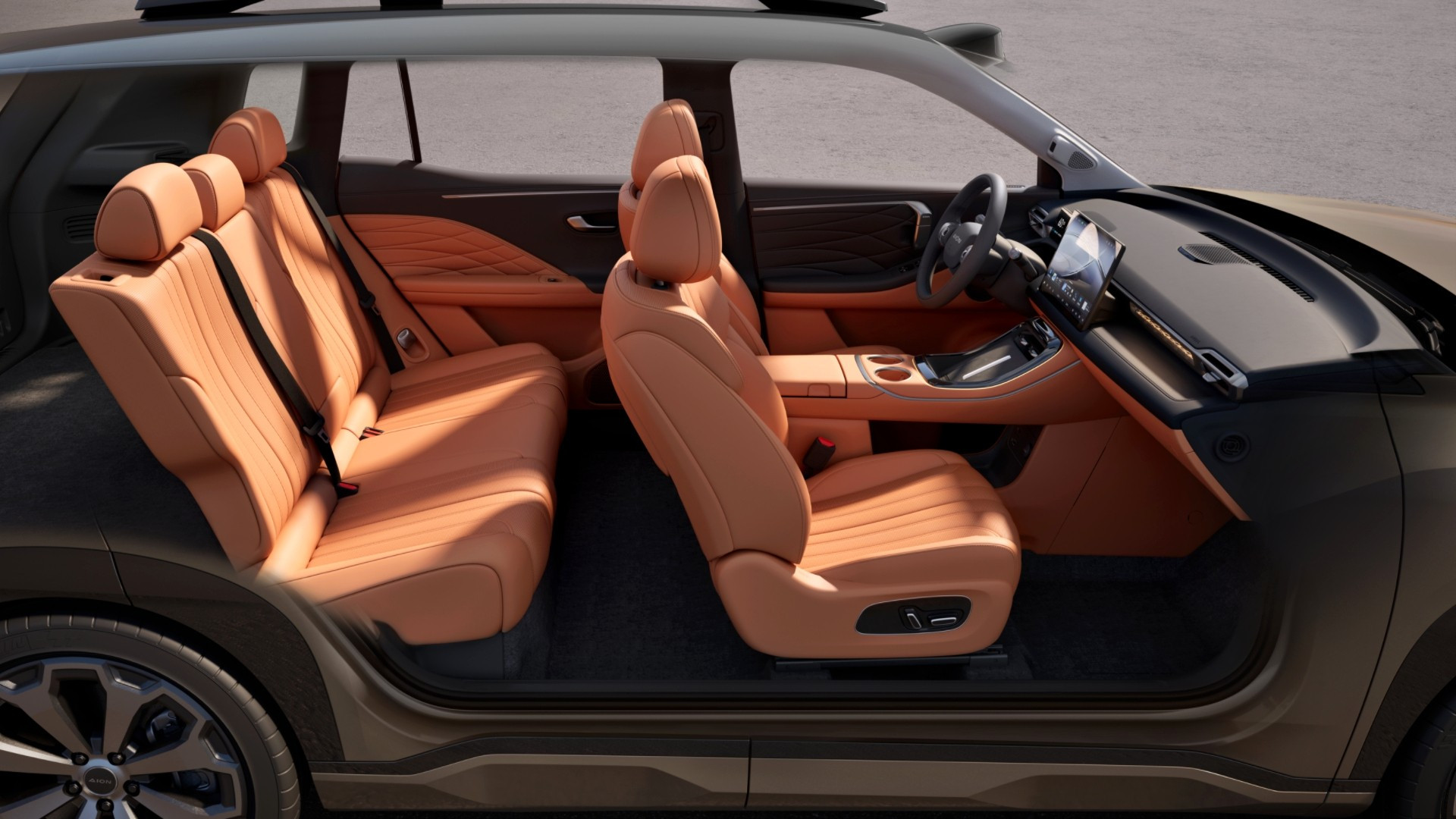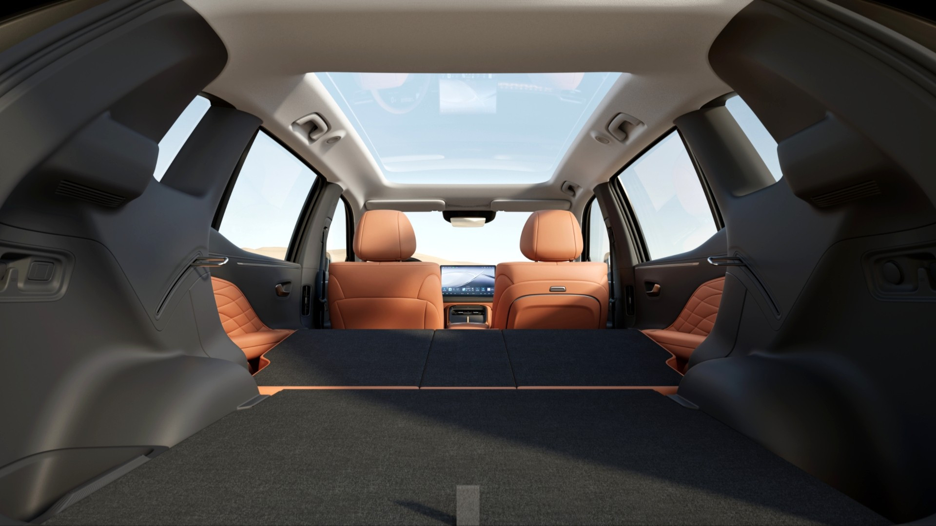 Пятиместный салон нового кроссовера имеет минималистичный дизайн и аккуратную отделку кожзамом, а в самой дорогой комплектации заявлена настоящая кожа. Дорогие комплектации, кроме того, щеголяют раскладными столиками для пассажиров второго ряда, передними креслами-кроватями повышенной комфортности со встроенными массажёрами и термобоксом между ними (поддерживает заданную температуру в диапазоне от -15 до +50 градусов Цельсия), мощной аудиосистемой с девятью динамиками, панорамной стеклянной крышей и полным набором разнообразных электронных ассистентов водителя. Мультимедийный экран на все версии один — 14,6-дюймовый. Объём багажника — 427 л.