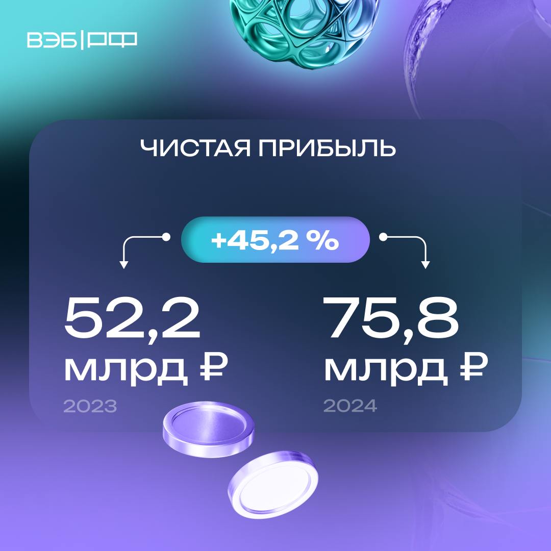 ✅ ВЭБ завершил 2024 год с прибылью в ₽ 75,8 млрд