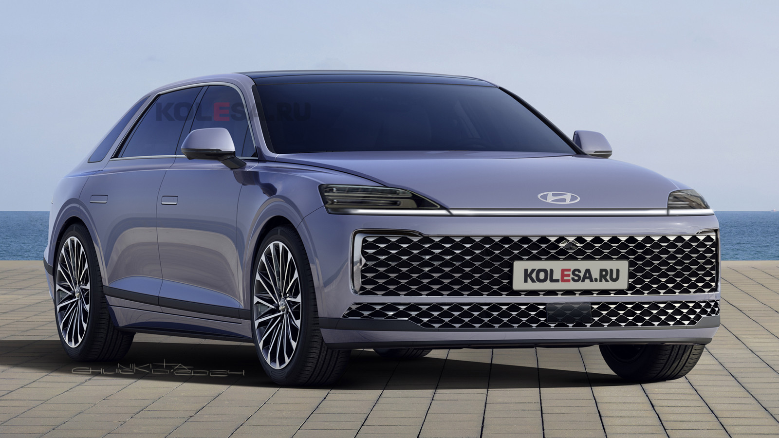 Начнём в алфавитном порядке, и первым в нашей подборке стал флагманский седан Grandeur, премьера которого состоялась в конце 2022 года. Он сохранил характерную светодиодную полоску во всю ширину передней части, при этом к ней добавились полноценные блоки ближнего и дальнего света. Массивная решётка радиатора стала ещё шире за счёт «освободившегося» пространства.