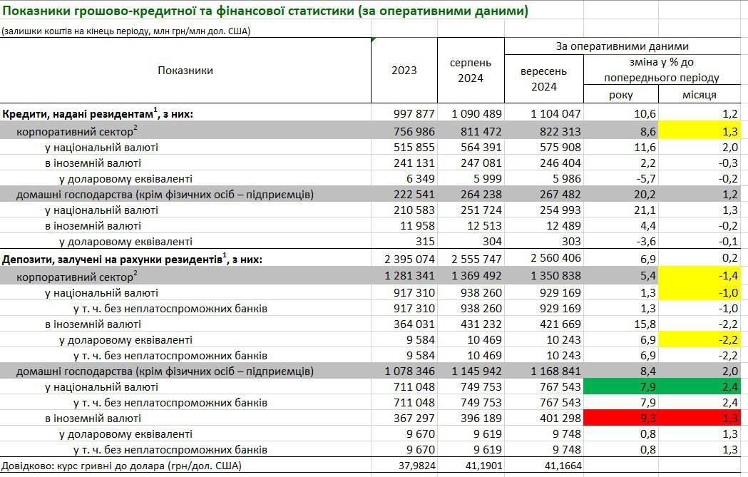 В НБУ сообщают, что в сентябре объем средств на депозитах юрлиц сократился на 18,7 млрд грн — до 1,35 трлн грн. Но, забирая собственные средства, украинские предприятия активнее наращивают заимствования в гривне. Так, бизнес-кредитования в гривне выросли на 11,5 млрд грн (на 2%, до 575,9 млрд грн), но сократились в иностранной валюте на $13 млн (на 0,2%, до $5,99 млрд).