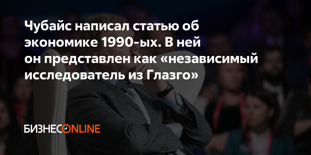 Бывший гендиректор компании «Роснано» Анатолий Чубайс опубликовал статью «Неплатежи в pоссийской экономике 1990-х: непредвиденный институт» в российском журнале «Вопросы экономики». В ней он представлен в ней как независимый исследователь из Глазго, Великобритания.