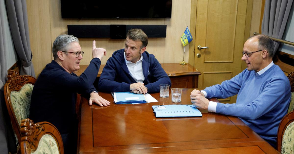 Passer la publicité Passer la publicitéCela faisait trois ans qu’il ne s’était pas rendu en Ukraine. Sur le quai de la gare centrale de Kiev ce samedi matin, Emmanuel Macron était cette fois accompagné du chancelier allemand Friedrich Merz et du premier ministre britannique Keir Starmer. Ils seront bientôt rejoints par le premier ministre polonais, Donald Tusk. Cette visite, coordonnée est symbolique, au lendemain des fastes militaires du Kremlin sur la place rouge pour le 9 mai. À Moscou, Vladimir Poutine célébrait la victoire soviétique contre le nazisme entouré, entre autres, du chinois Xi Jinping, du brésilien Luiz Inacio Lula et du slovaque Robert Fico. À Kiev, ce sont les soutiens européens qui se pressent pour afficher leur solidarité, et, surtout, faire avancer un projet commun de cessez-le-feu.
