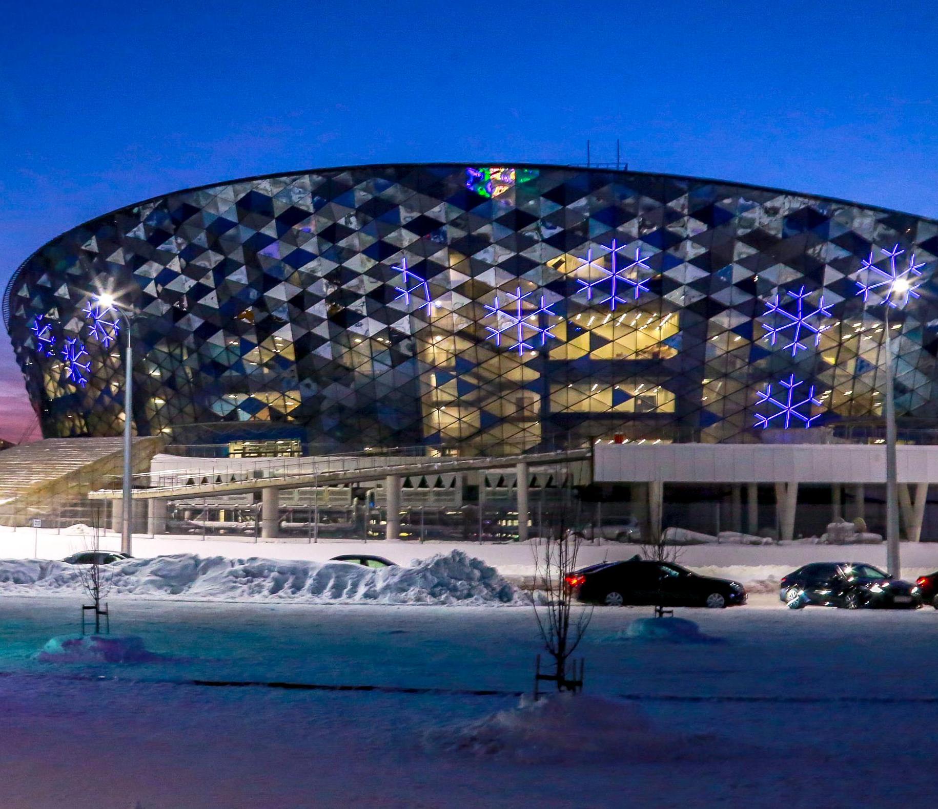 Раньше на этом месте были густые заросли, а сейчас крупнейшее спортивное сооружение за Уралом. Строили ледовую арену по международным стандартам. Это значит, что площадка рассчитана на соревнования мирового масштаба. Её трибуны могут вместить 10 587 зрителей.