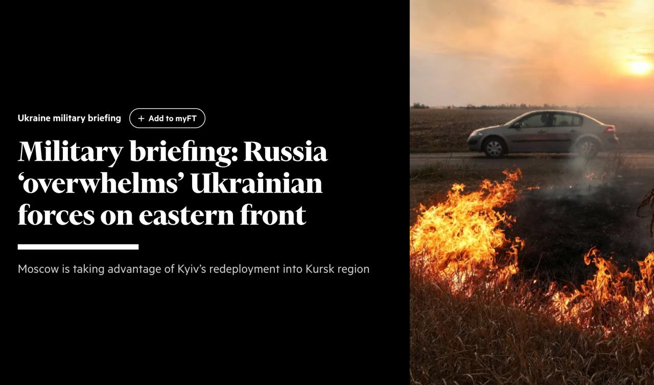 Наступление на Курск не помогло Украине удержать ситуацию на восточном фронте, где Россия «сокрушает» украинские войска. Угледар может пасть «в ближайшие недели», а Покровск - ближе к зиме, пишет Financial Times.