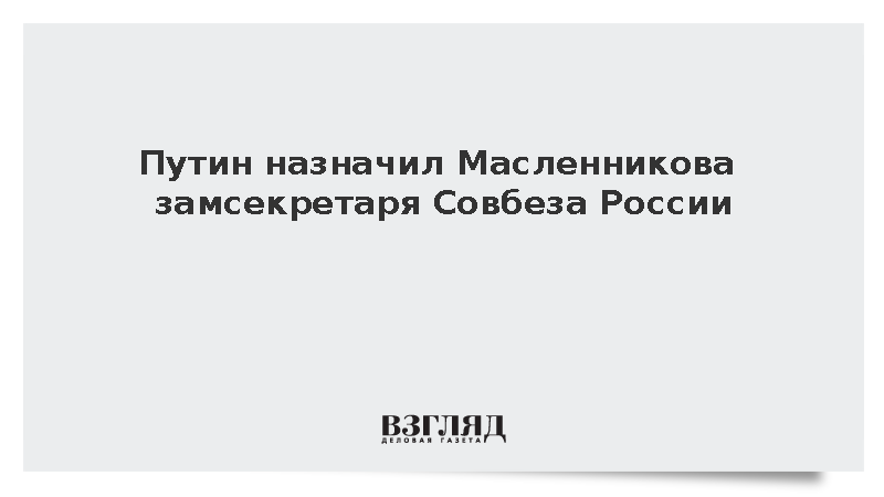 Президент России Владимир Путин подписал указ о назначении Александра Масленникова на должность заместителя секретаря Совета безопасности Российской Федерации. Об этом сообщает ТАСС. В тексте указа подчеркивается: «Назначить Масленникова Александра Владимировича заместителем секретаря Совета безопасности РФ».