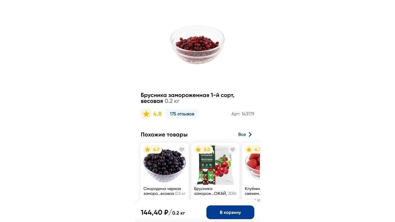 Кстати, в супермаркетах цена на ягоду будет дороже. Например, в сургутской «Ленте» всего 200 грамм ягоды обойдутся примерно в 150 рублей. При этом брусника в данном случае будет замороженной — свежей в наличии нет вообще.