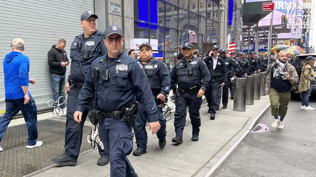New York City police officers work Sunday's pro-Palestinian rally. (Peter Gerber for Fox News Digital)