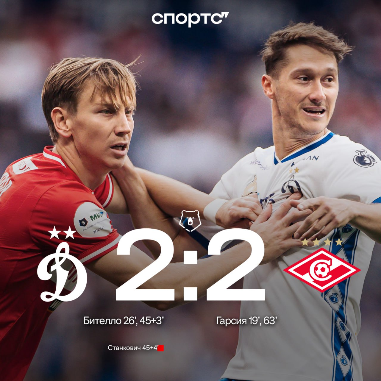 🇷🇺 🤝 🇷🇺 Ничья в московском дерби − на дубль Бителло ответил Ливай Гарсия
