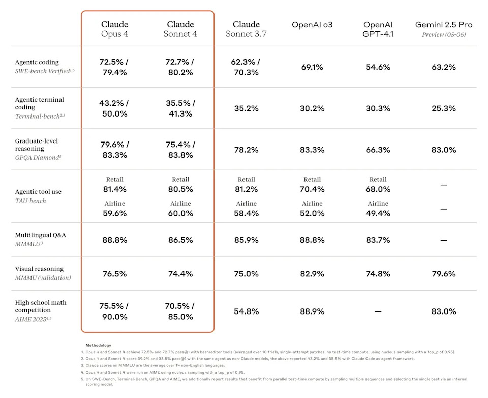Одновременно с Opus 4 компания выпустила обновленную модель Claude Sonnet 4. Как и предшественник Sonnet 3.7, новая система использует гибридное мышление, позволяющее мгновенно выполнять простые запросы и глубоко анализировать сложные проблемы. Sonnet 4 получил многие улучшения Opus 4, включая параллельное использование инструментов и более точное следование инструкциям.