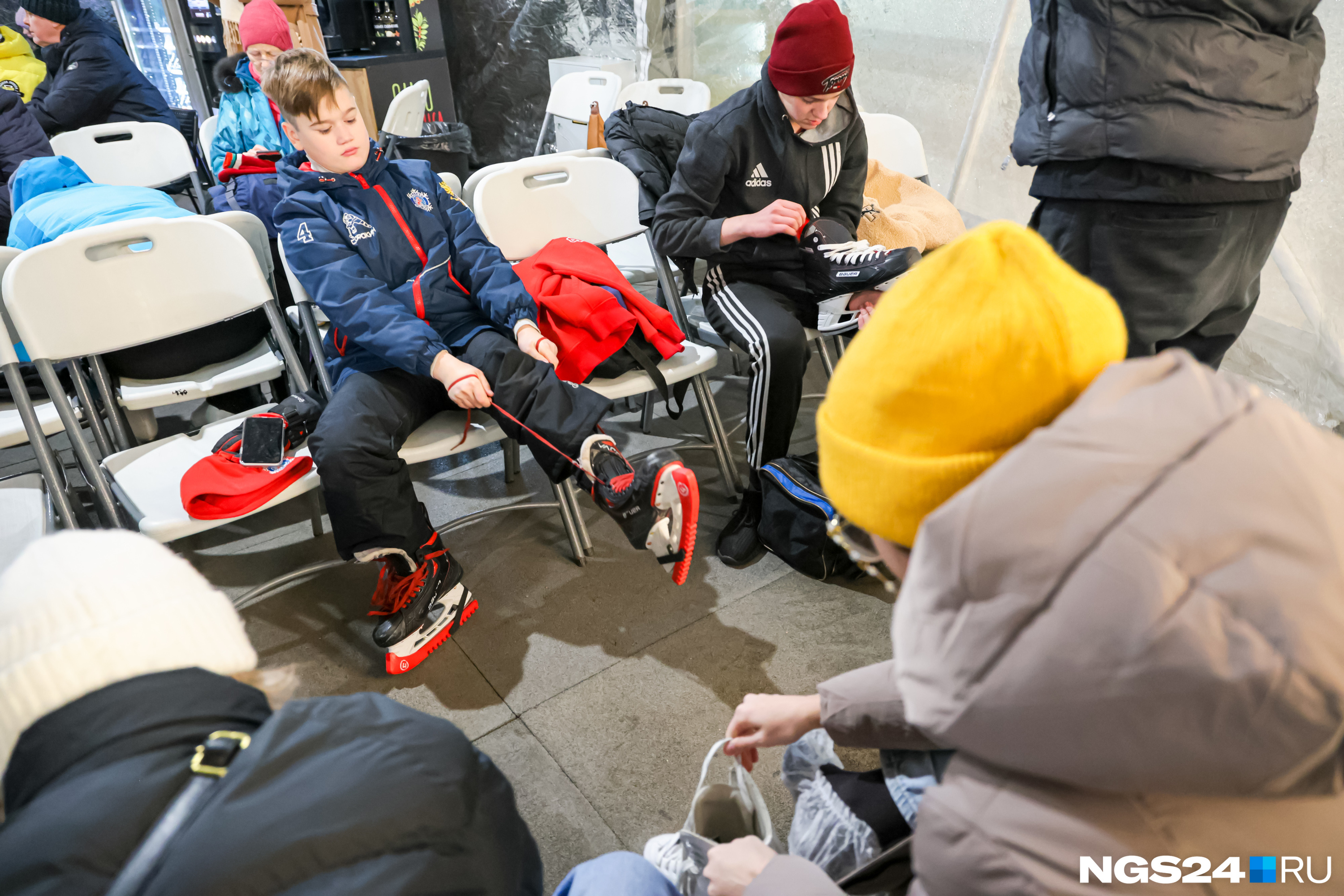 Там установили шатер, в котором горожане смогут переобуться и перекусить в кафе, завезли новые коньки, от