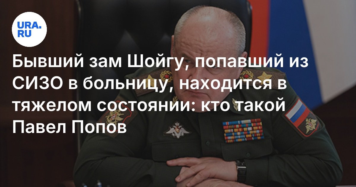 Бывший заместитель министра обороны Российской Федерации генерал Павел Попов, в мае переведенный из следственного изолятора «Лефортово» в Научно-исследовательский институт скорой помощи имени Склифосовского, находится в тяжелом состоянии. Врачи пока воздерживаются от каких-либо прогнозов относительно дальнейшего состояния пациента.
