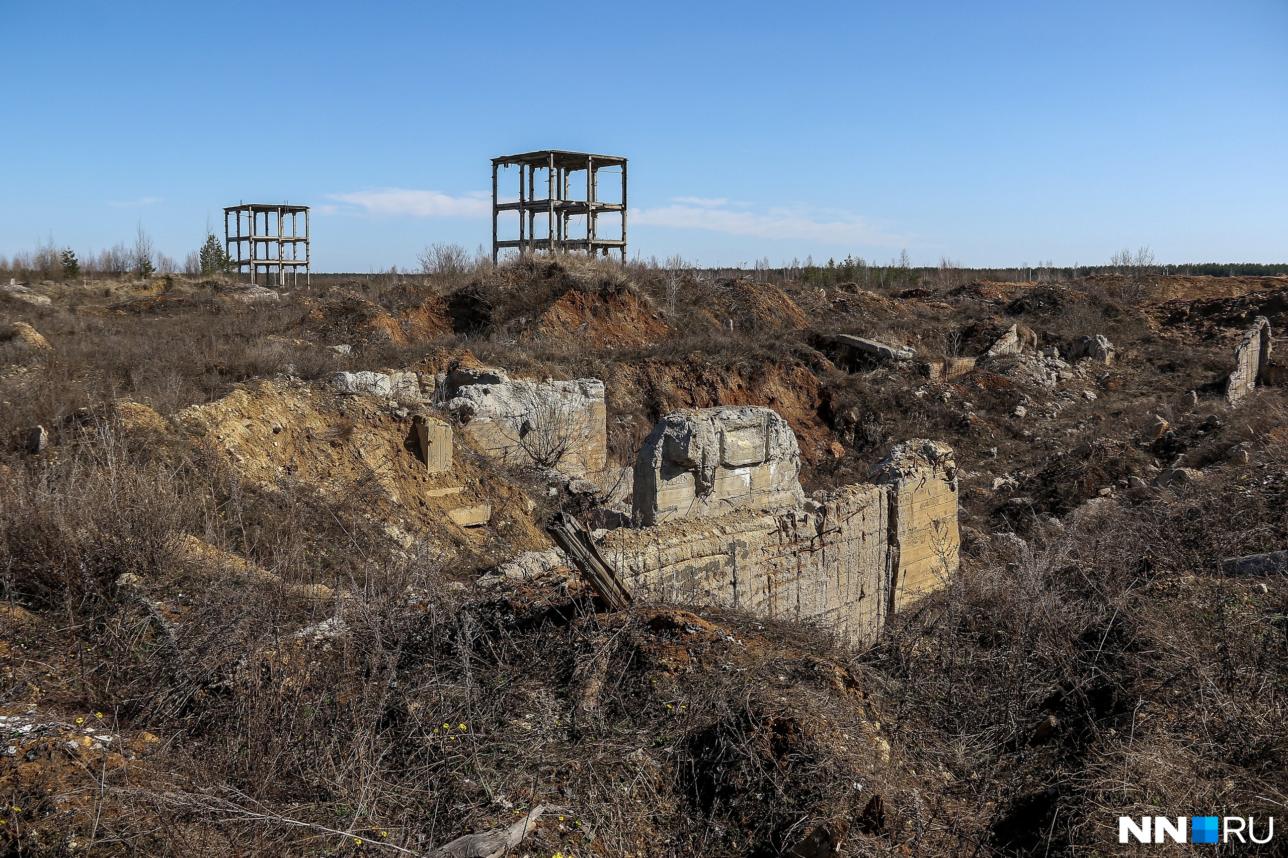 Территория бывшего предприятия действительно напоминает декорации к постапокалиптическому фильму. Она никем не охраняется. Вдоль дороги к карьеру стоят огромные коробки цехов. Земля покрыта свалками: за ними торчат заводские трубы и непонятные бетонные конструкции.