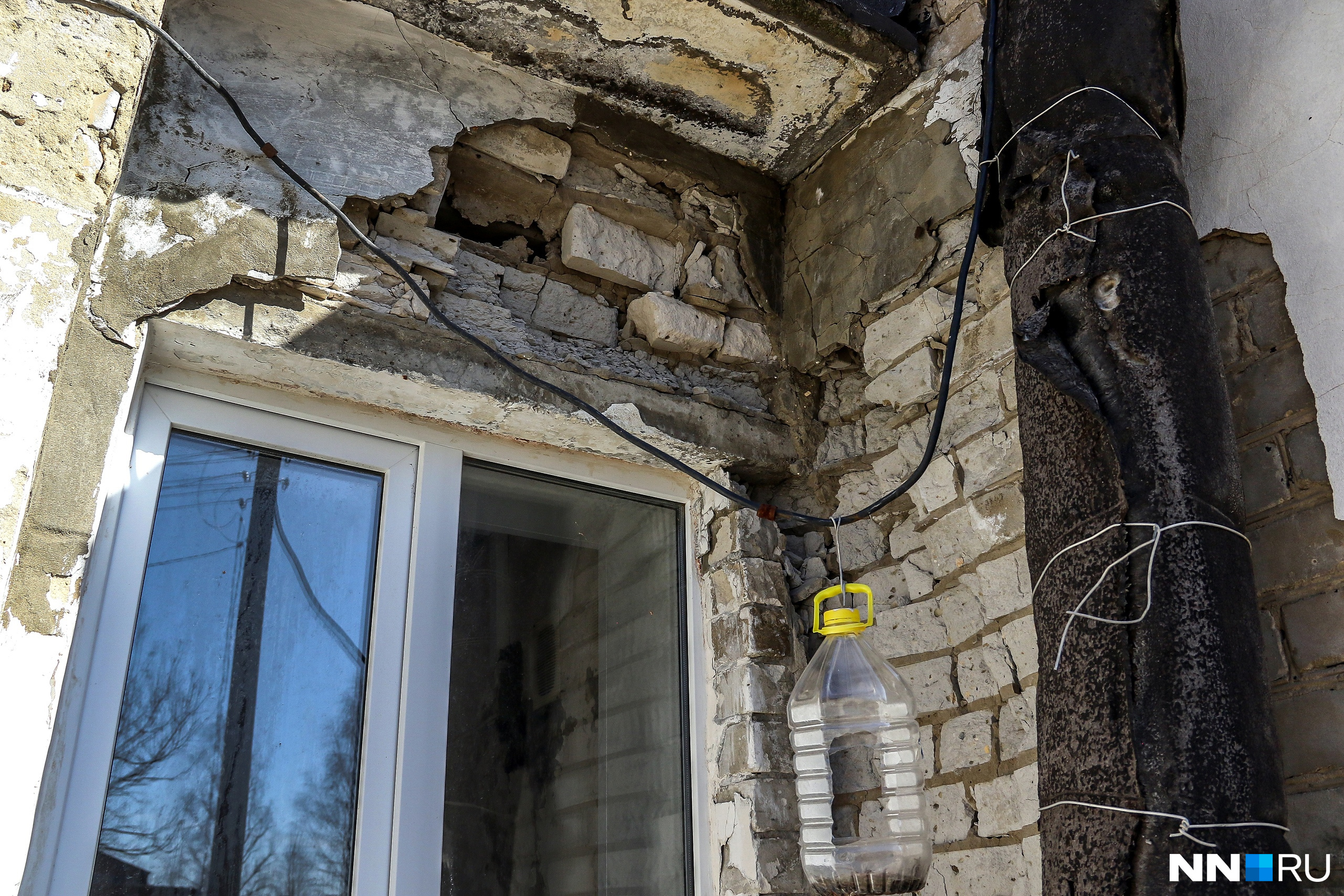 Одноэтажная амбулатория стоит на улице Мира. Ей 40 лет, и она ни разу не ремонтировалась. Над окном у входа торчат кирпичи, чернеет дыра. Мимо небрежно тянется провод, на нем болтается пластиковая баклаха с отверстиями по бокам: это кормушка для птиц.
