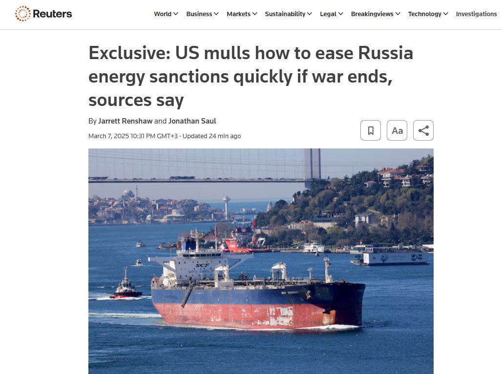❗️США изучают способы быстрого ослабления санкций против России в сфере энергетики