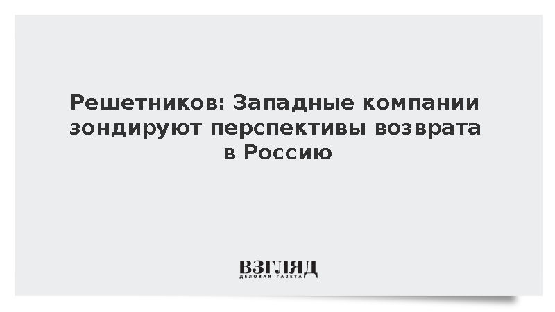Решетников подчеркнул, что информационные сообщения о возможном возврате западных компаний вызывают беспокойство у российских предпринимателей, которые вложили средства и ожидают стабильности. «Пока каких-то юридических обращений к нам не было. Но явно идет зондирование в информационном поле», – отметил министр.