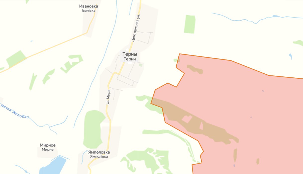 Поступает информация о заходе бойцов ВС РФ в н.п. Терны (Краснолиманское направление). В данный момент бои ведутся на окраине села.