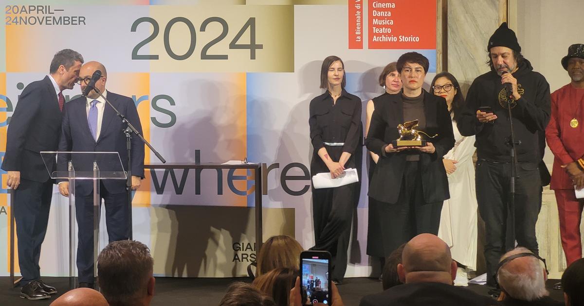 Le palmarès de la Biennale de Venise, c’est un moment très italien qui se tient dans la Salle des Colonnes à Ca’Giustinian, près de la piazza San Marco. Les sièges sont numérotés, les préséances sont indiquées, les carabinieri à l’uniforme bien repassé et aux galons blancs veillent à leur respect. Les officiels dans les rangs devant, à commencer par le ministre de la Culture, Gennaro Sangiuliano, petit homme rond nommé le 22 octobre 2022 par le président de la République, Sergio Mattarella, sur proposition de la présidente du Conseil des ministres, Giorgia Meloni. Les artistes pressentis au palmarès, aussi.