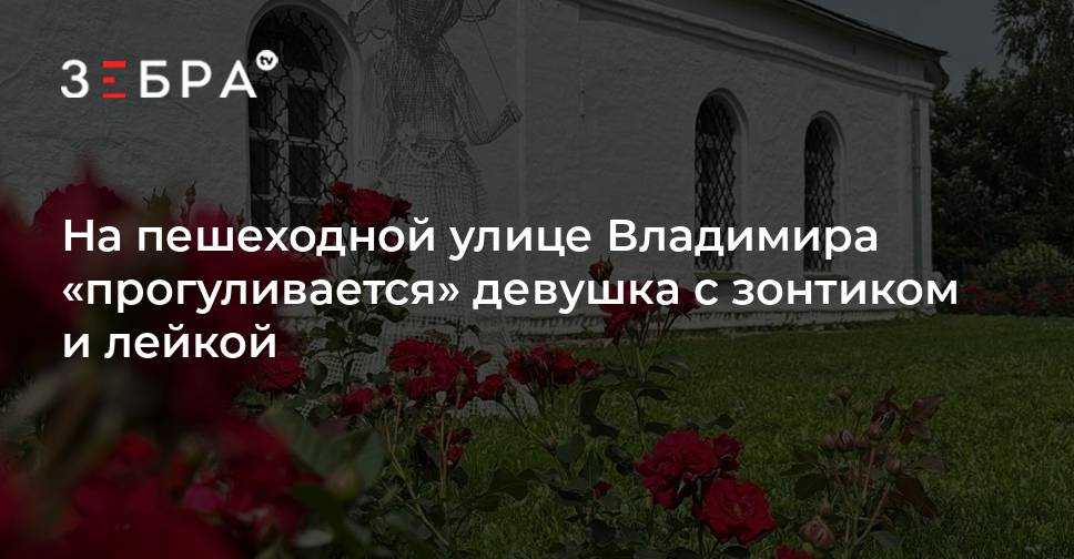 В столице Владимирской области на пешеходной улице Георгиевской установили новую декоративную фигуру – девушку с зонтом и лейкой из белой плетеной проволоки. Оригинальное украшение установили на газоне у Георгиевского храма – создается впечатление, что девушка поливает клумбу.