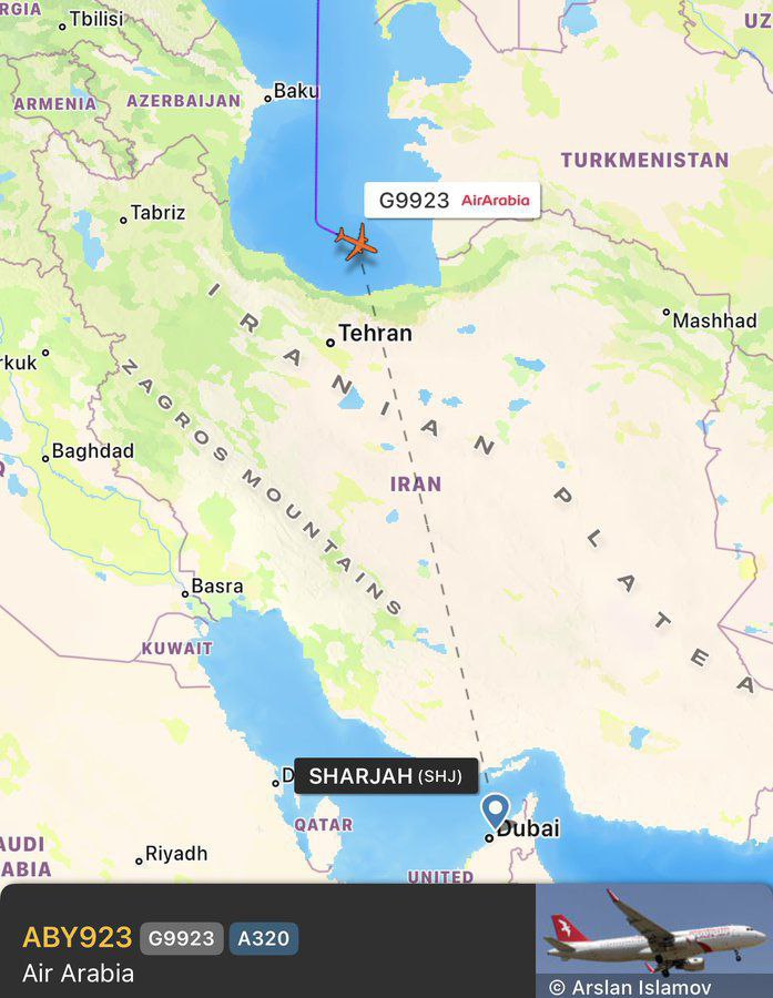 Рейсы, проходящие через Иран в страны Персидского залива, облетают иранское воздушное пространство.