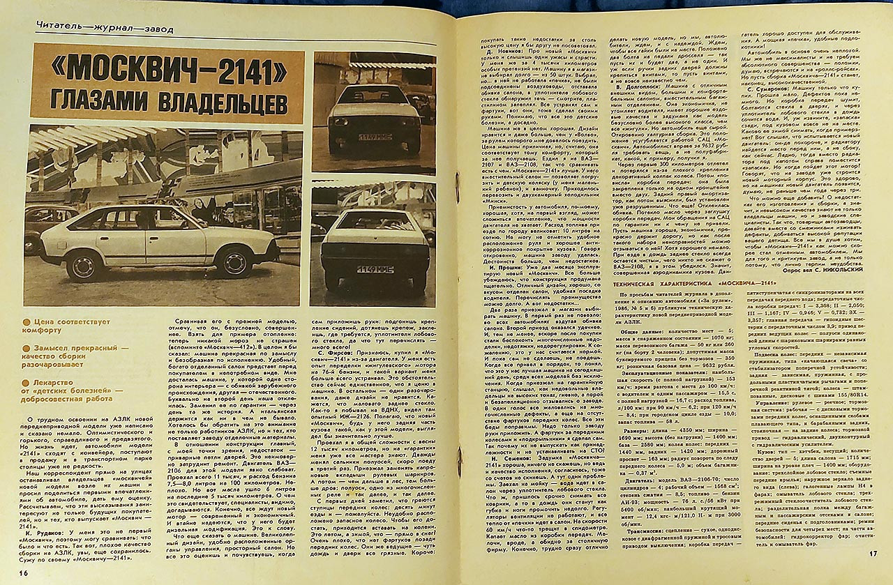 «Москвич-2141 глазами владельцев», журнал «За Рулём», №11, 1987