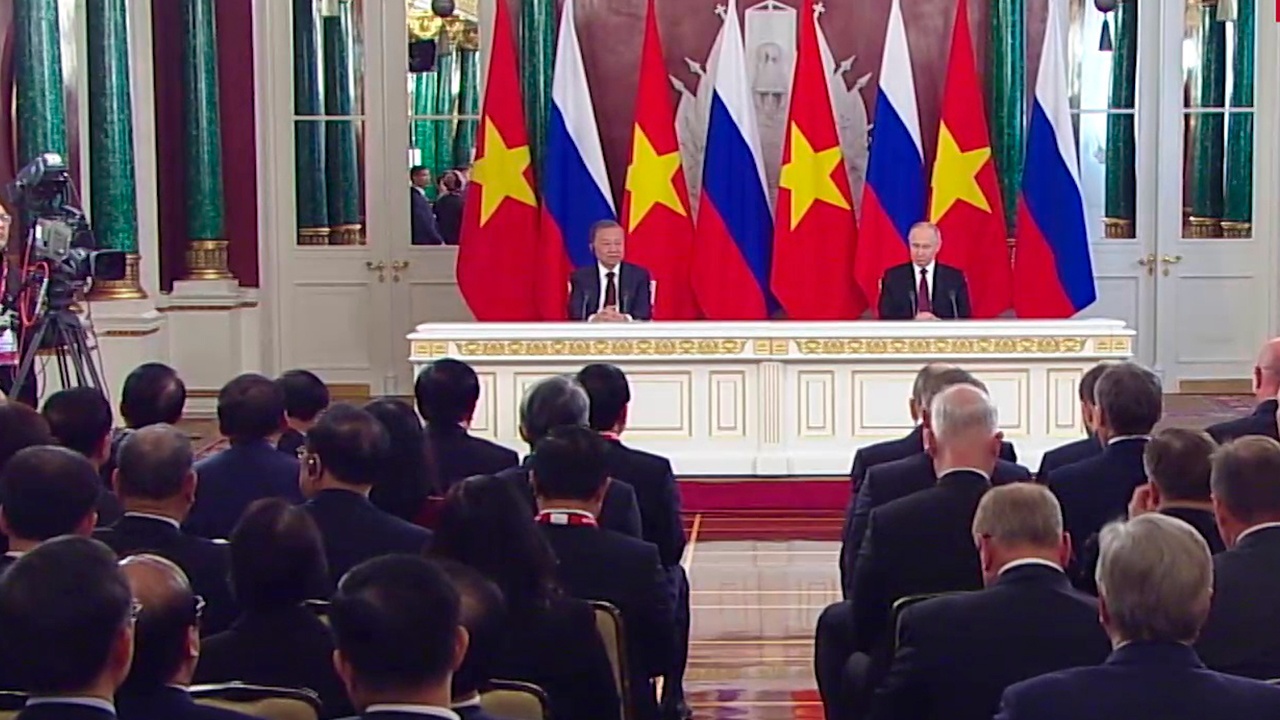 Российский президент Владимир Путин и генсек ЦК Компартии Вьетнама То Лам подписали ряд документов во время встречи в Кремле. В частности, стороны подписали совместную декларацию об основных направлениях всеобъемлющего стратегического партнерства на новом этапе.