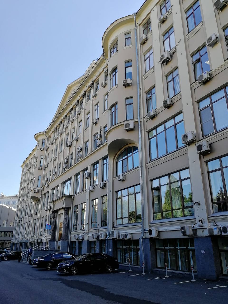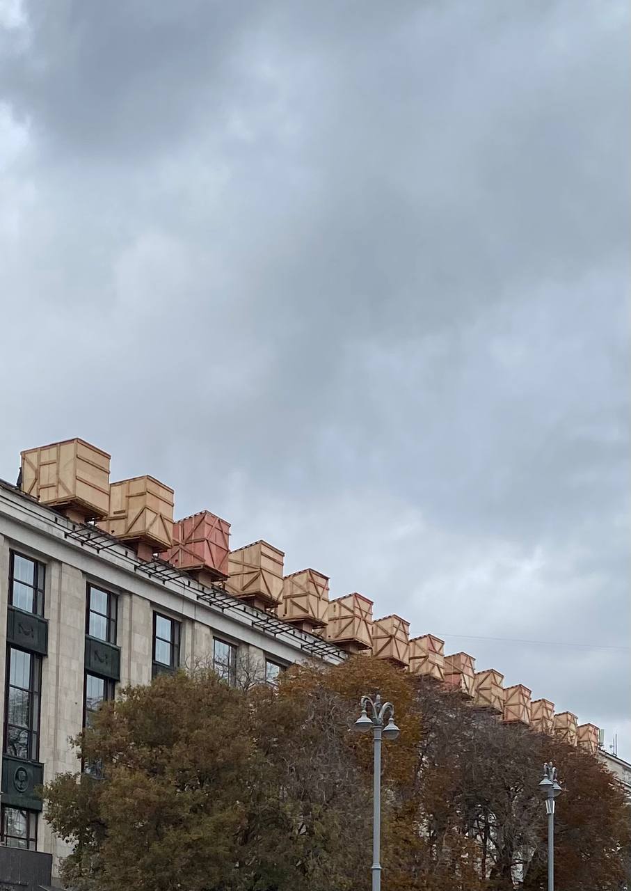 Ящики для скульптур (идет реставрация) на здании библиотеки имени Ленина в Москве смотрятся либо как арт-объект, либо как маленькие студии.