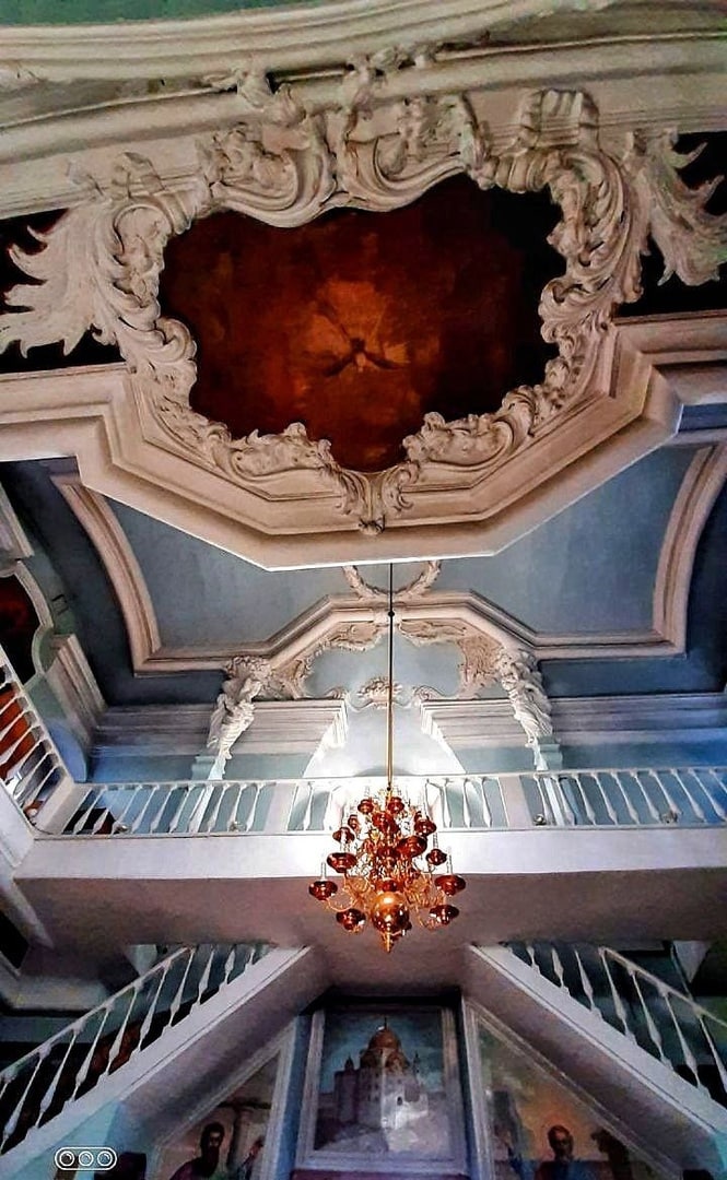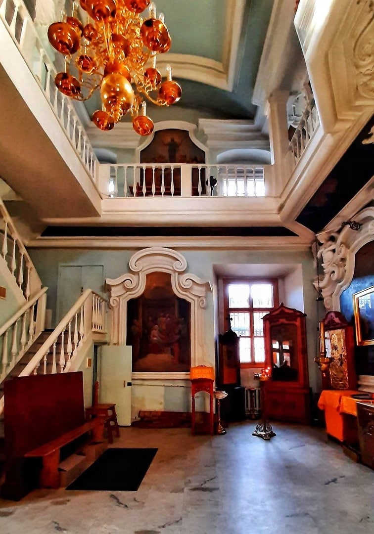 Под высоченным куполом - роспись с христианскими персонажами. Стены и окна наверху тоже отделаны скульптурными орнаментами. В одном из рядов прекрасного иконостаса в красивой серебряной ризе находится Образ Святого Архангела Гавриила.