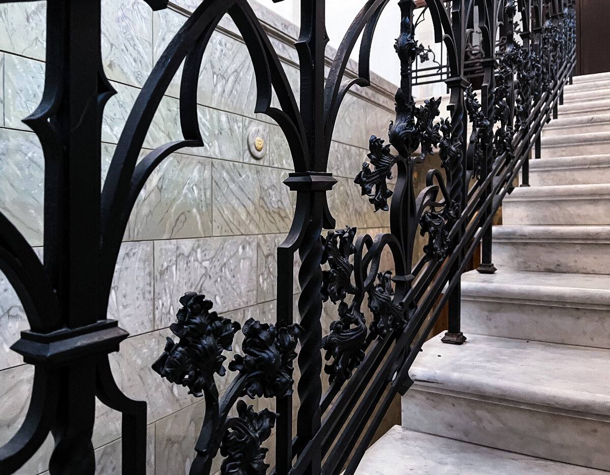 Сама лестница выполнена из белого мрамора.