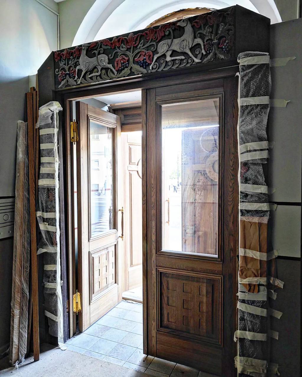 Понятно, что большинство красивых подъездов (парадных) мы обнаружим в Петербурге. Но и Москва может кое-чем похвастать! Оформление подъезда в знаменитом «доме со зверями» на Чистопрудном бульваре. Работы выполняла художественная артель «Мурава».