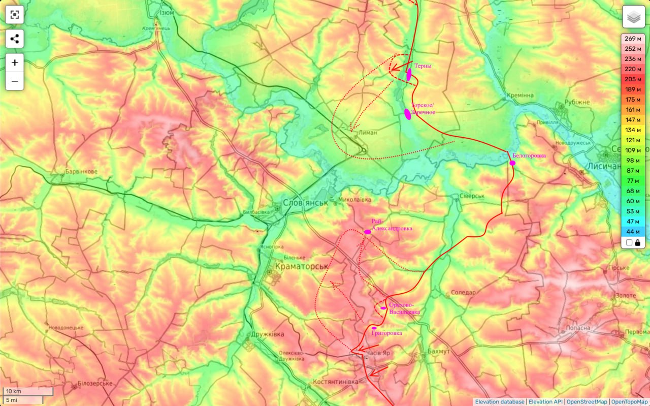 Очень важные подвижки. В чем их суть. Как я уже ранее говорил (карта2), если мы хотим обрезать коммуникации Северской группировки противника, нам надо брать под контроль дороги вокруг Рай-Александровки. Этот н.п. ключ ко всему, что расположено восточнее.