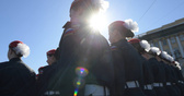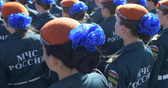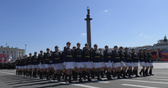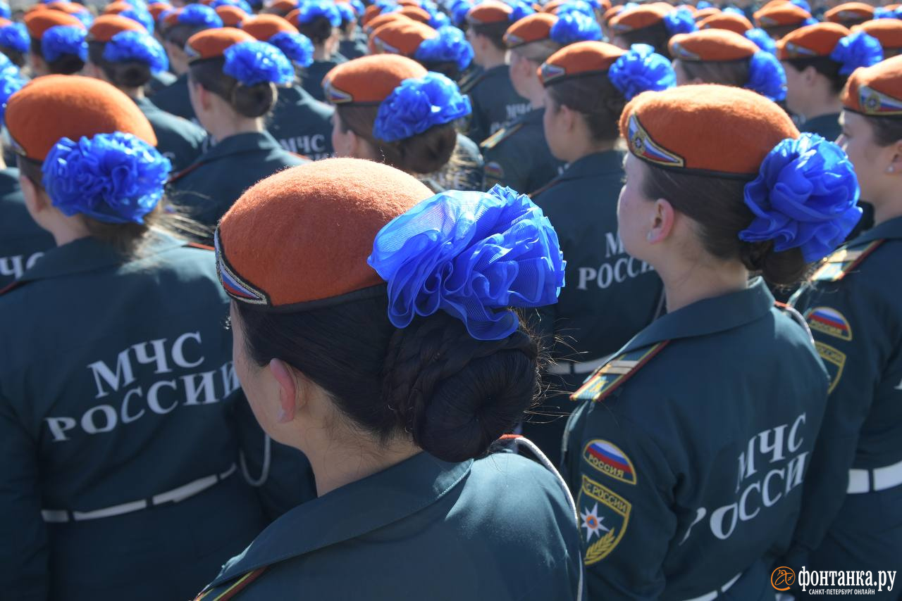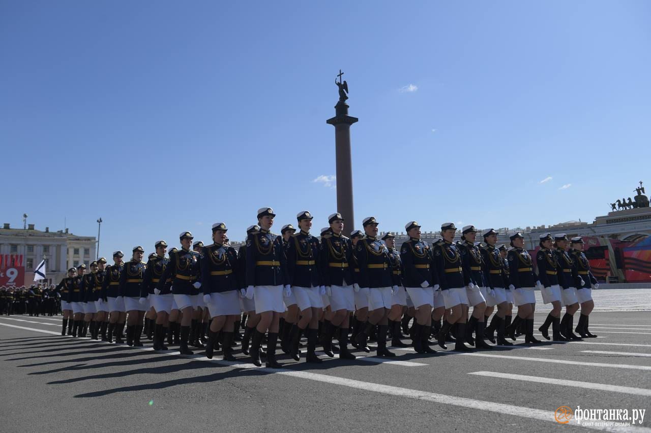 Открыл парад сводный расчет юных барабанщиков Кронштадтского военно-морского кадетского корпуса. По Дворцовой площади маршировал и один из самых красивых расчетов — женщины-военнослужащие 6-й Ленинградской Краснознаменной Ордена Жукова армии ВВС и противовоздушной обороны.